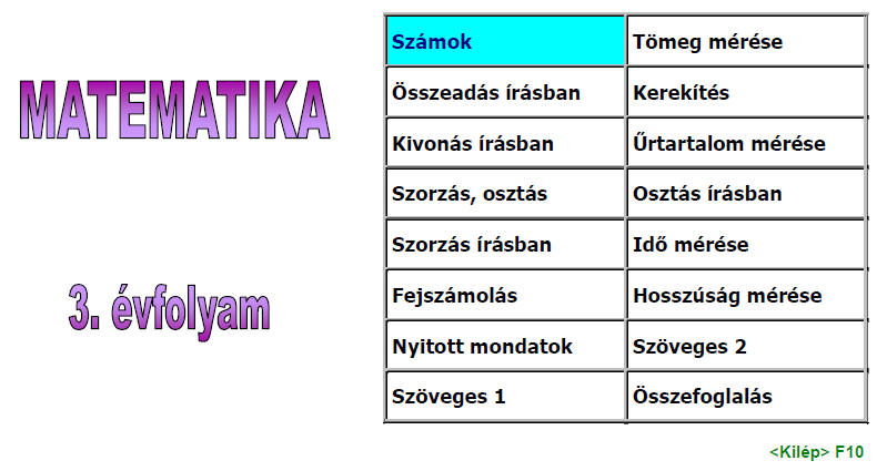 A 3. évfolyam bejelentkező képernyője