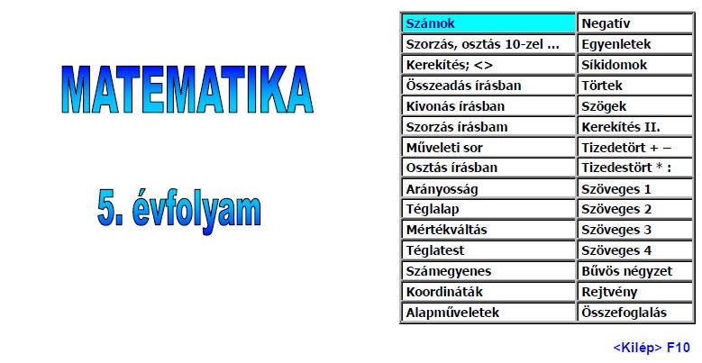 Az 5. évfolyam bejelentkező képernyője